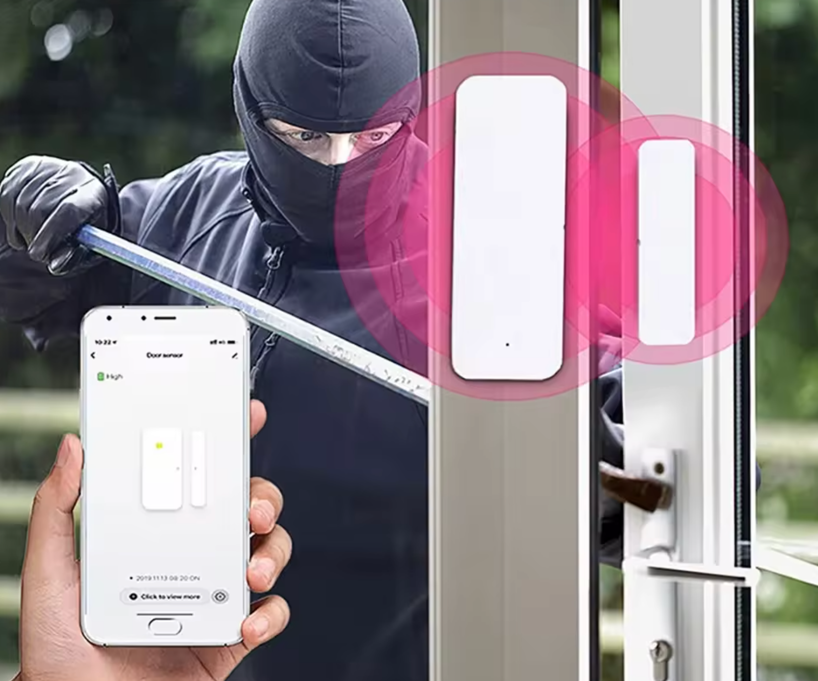 Whenever the sensor is triggered to open/close, it will send alarm to alert you that someone opens your door or window
